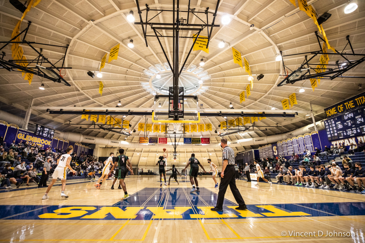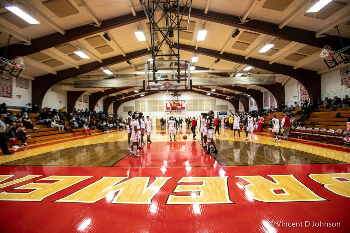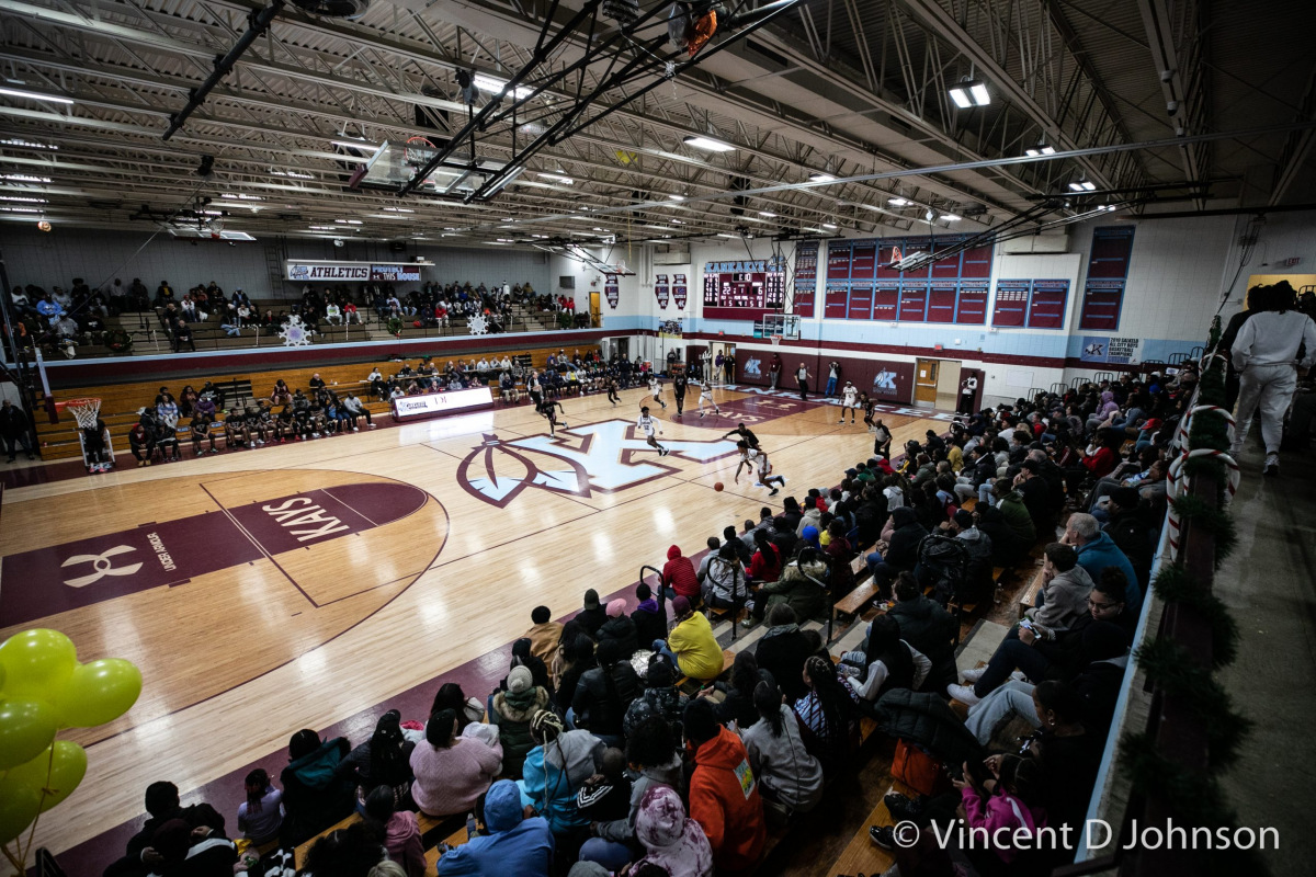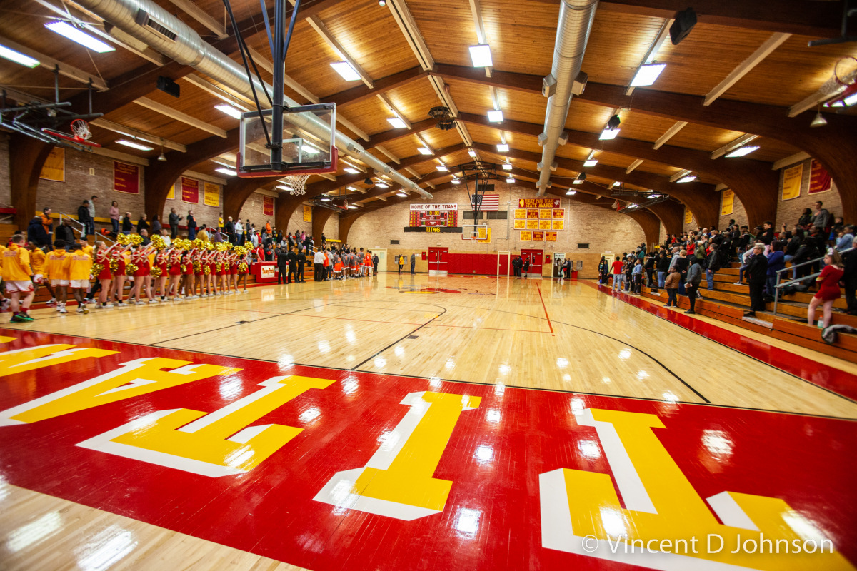 Caption: The last game at New Trier's Gates Gymnasium in Winnetka, Illinois, on Thursday, Dec. 16, 2021. Featuring varsity high school basketball games between the Lions of Lincoln Park form Chicago on the girls side and the Bears of Lake Zurich on the boys side against the Trevians of New Trier.