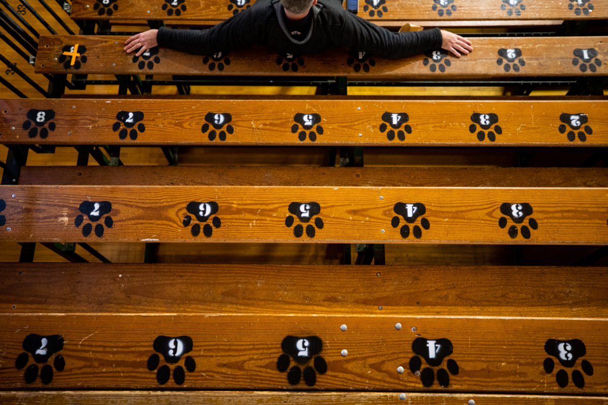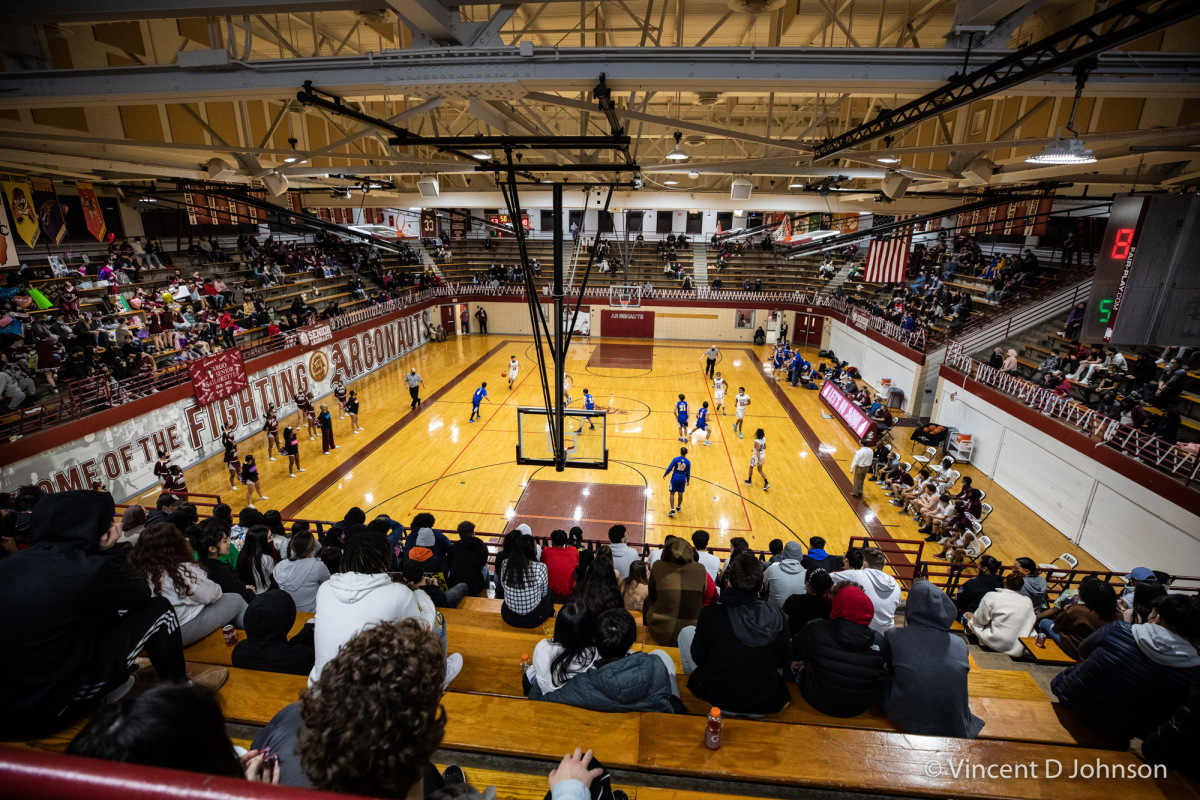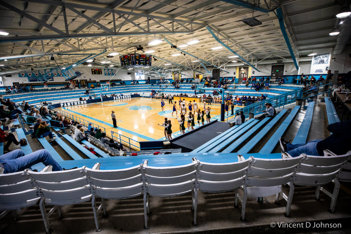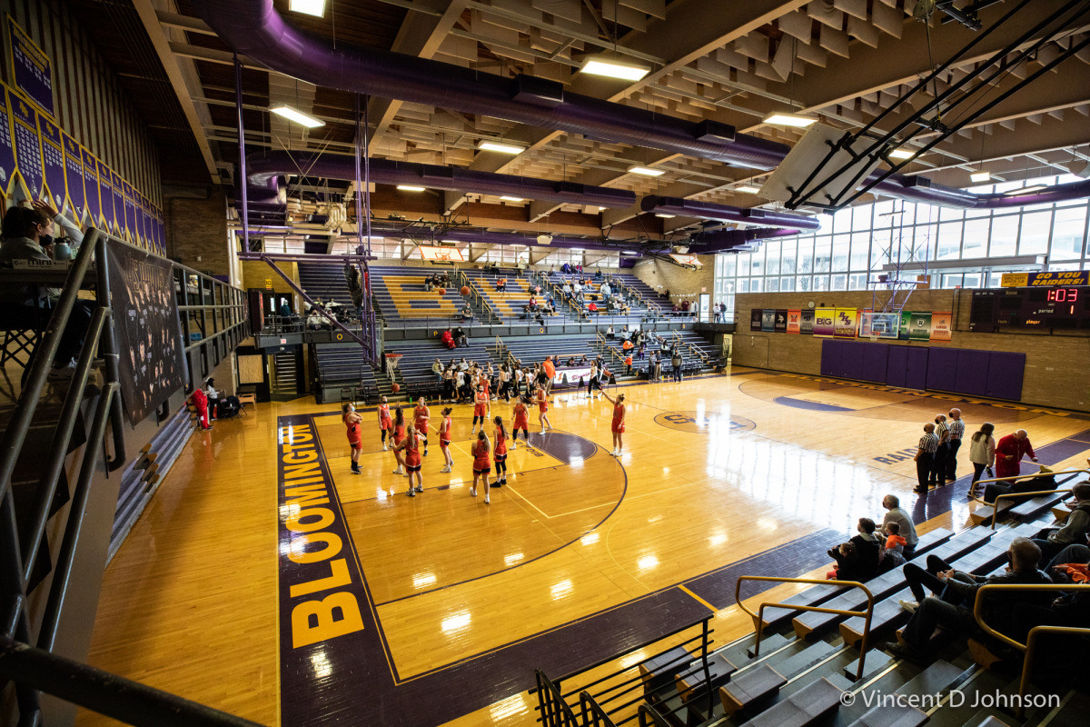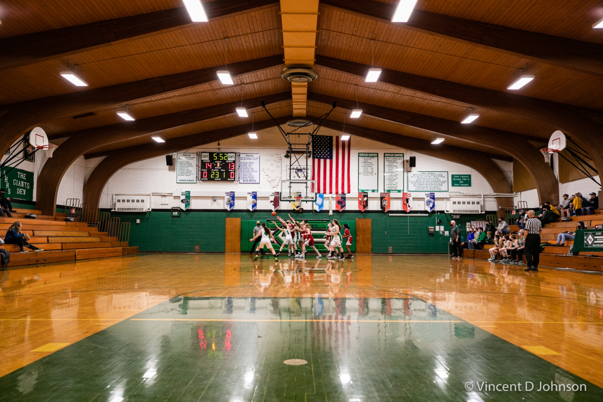 Caption: The last game at New Trier's Gates Gymnasium in Winnetka, Illinois, on Thursday, Dec. 16, 2021. Featuring varsity high school basketball games between the Lions of Lincoln Park form Chicago on the girls side and the Bears of Lake Zurich on the boys side against the Trevians of New Trier.
