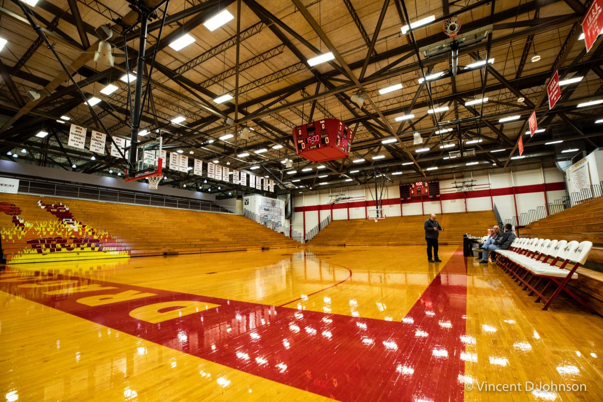 Caption: Part of the photo series Illinois' Best High School Gyms; Illinois varsity high school game between the of and the of on .