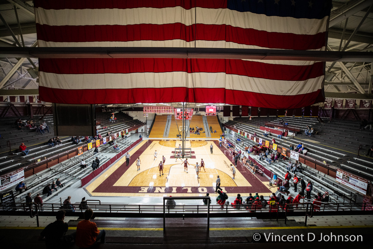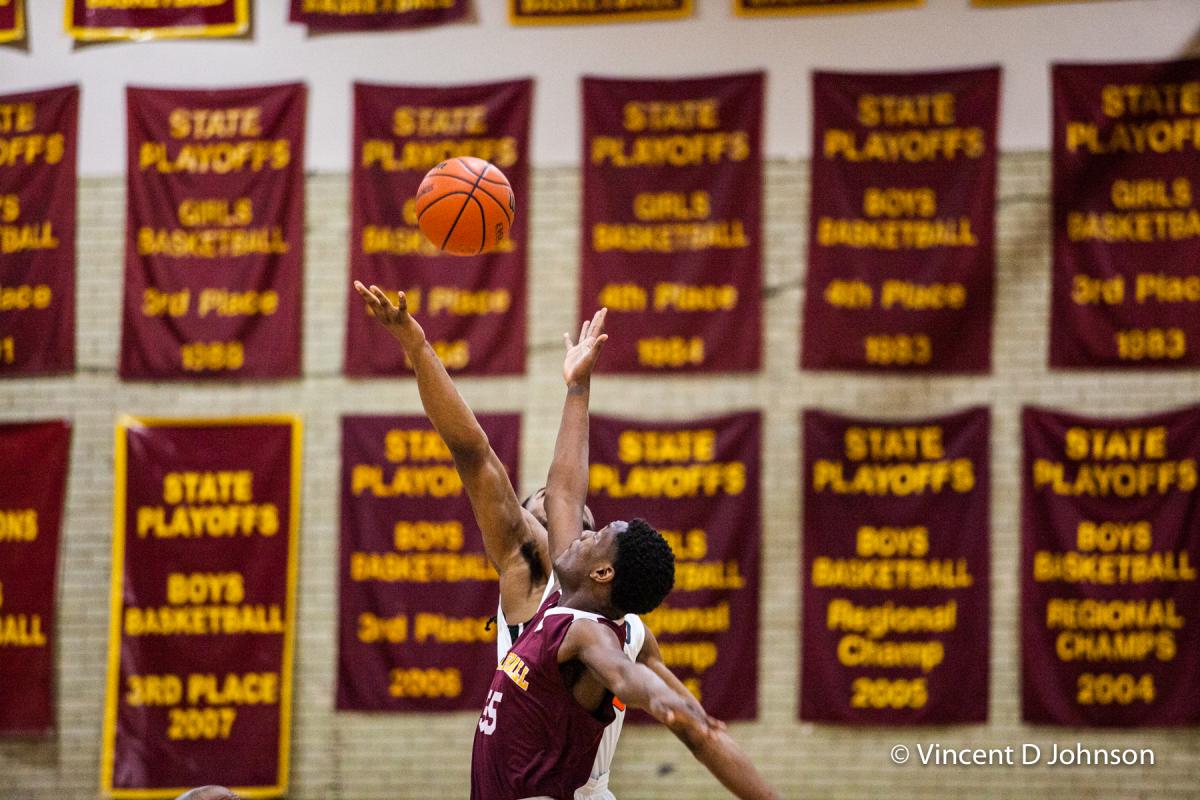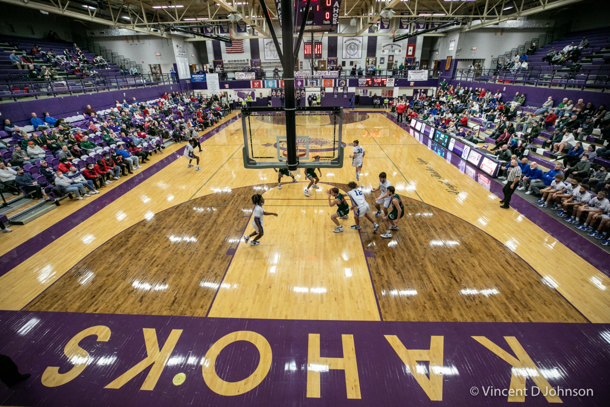 Caption: From the photo series Illinois' Best High School Hardwood & Hoops, featuring an Illinois varsity high school boys basketball game between Rock Ridge and Limestone, at The Wharton Field House in Moline on Jan. 15, 2022. (photo by Vincent D. Johnson)