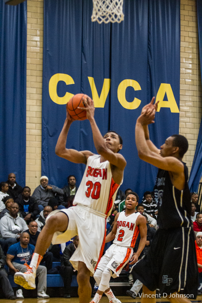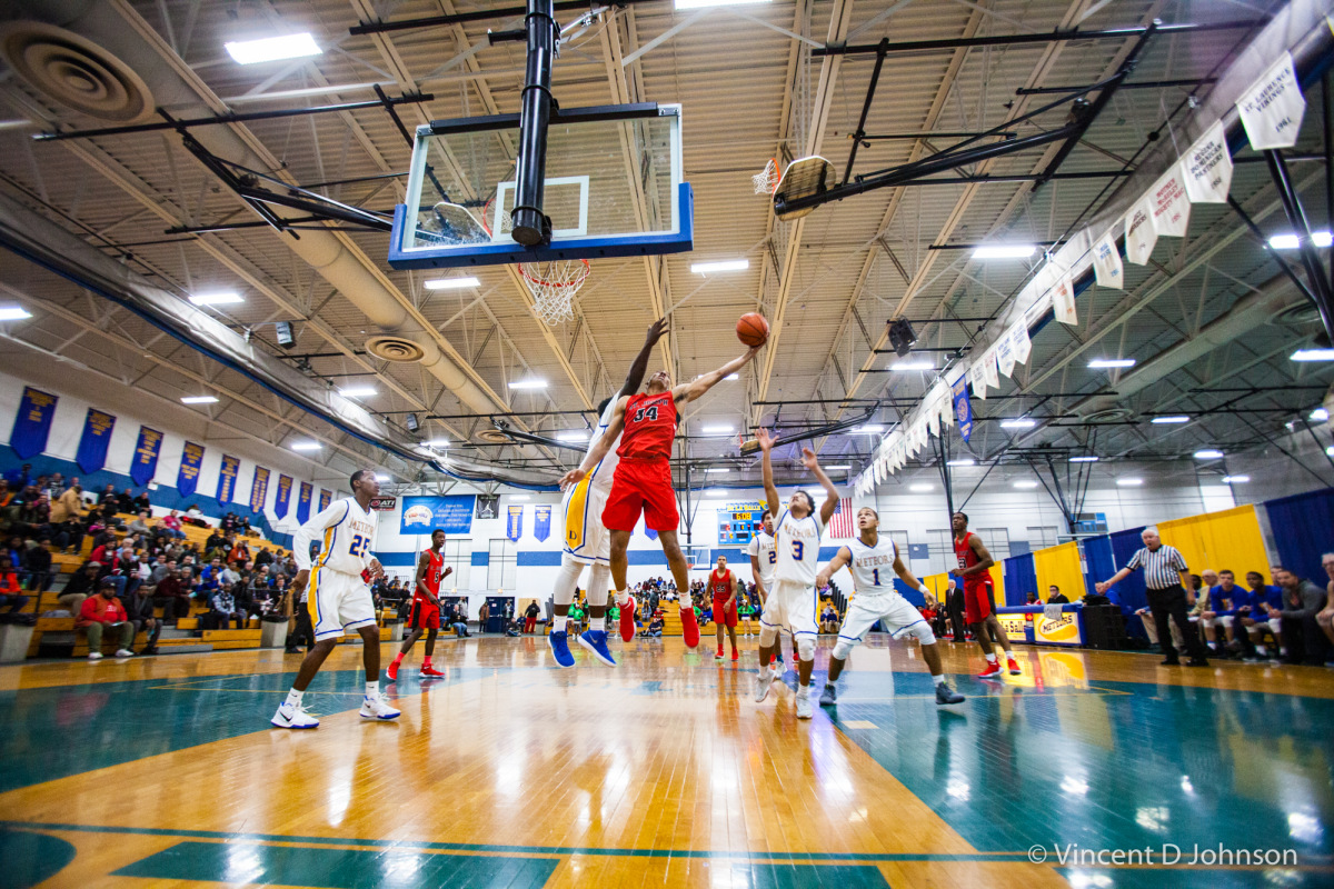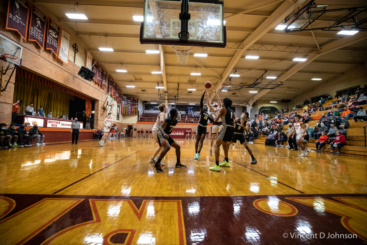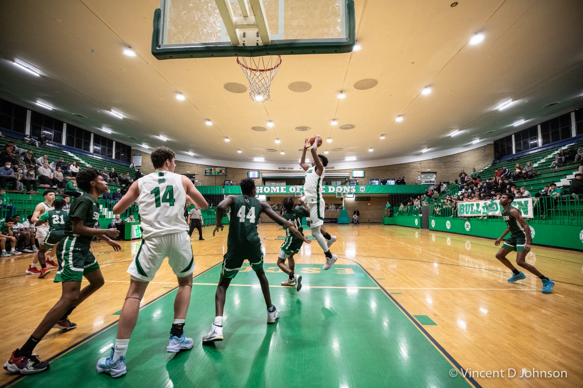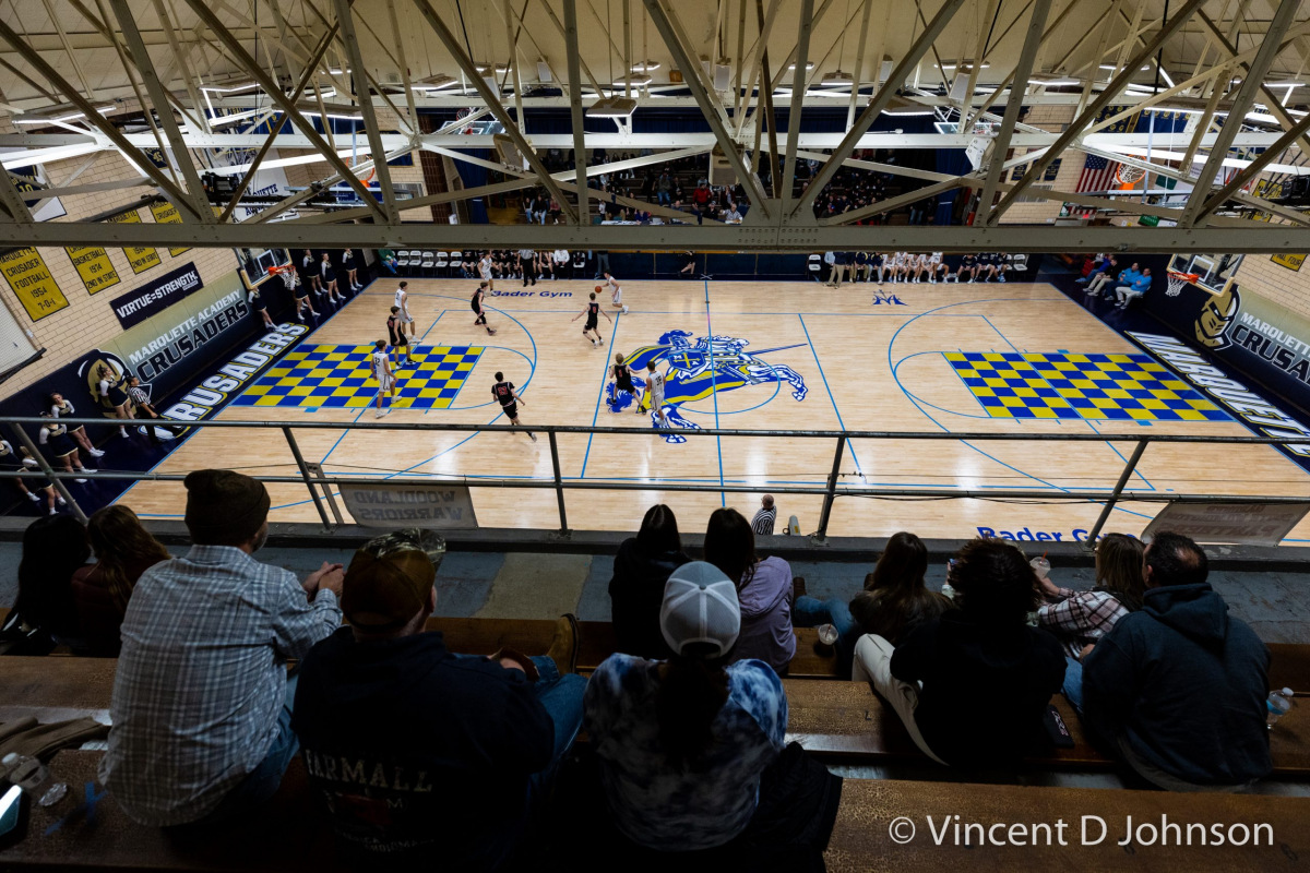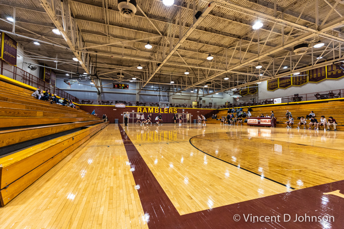Caption: From the photo series Illinois' Best High School Hardwood & Hoops, featuring an Illinois varsity high school boys basketball game between the of Francis Park H.S. from Chicago and the Warriors of Morgan Park Academy from Chicago, at Morgan Park Academy's Bitta Gymnasium in Chicago on Feb. 15, 2022. (photo by Vincent D. Johnson)