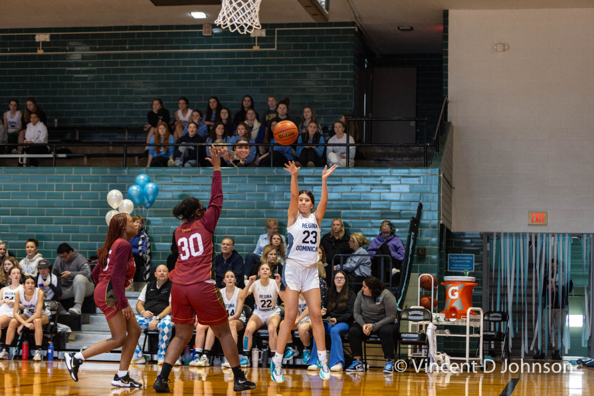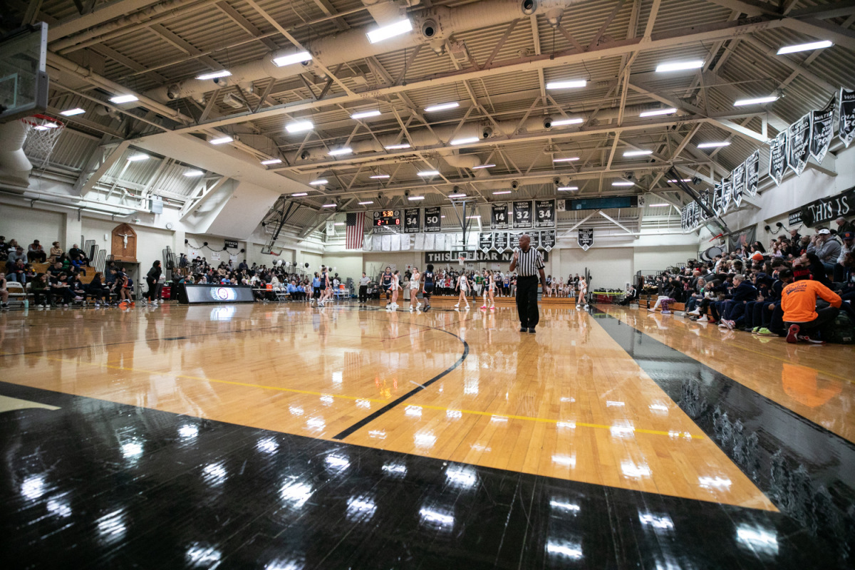 Caption: Regina Dominican H.S. part of the photo series Illinois' Best High School Gyms; Illinois varsity high school girls basketball game between the Crusaders of Chrits the King from Chicago and the Panthers of Regina Dominican from Wilmette, at Regina in Wilmette on Saturday, Jan. 13, 2024.