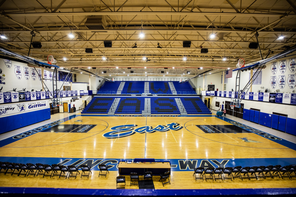 Photo of Joliet Central high school's main basketball gym.