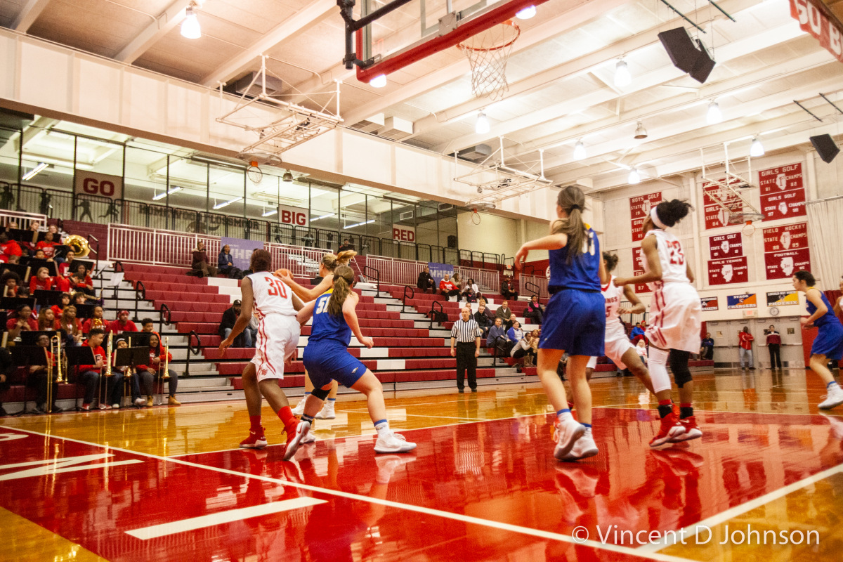 Caption: Illinois varsity high school girls basketball game between the Eagles of Sandburg from Orland Park and the Vikings of Homewood-Flossmoor, in Flossmoor on Tuesday, January 16, 2018.