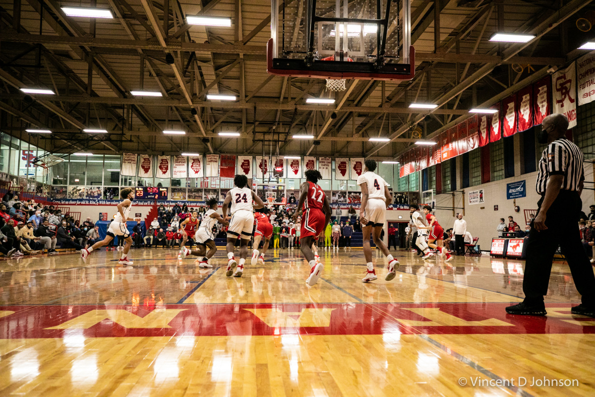 Illinois varsity high school boys basketball game between the Red Hawks of Marist from Chicago and the Mustangs of St. Rita from Chicago, at St. Rita in Chicago, on Tuesday, Dec. 14, 2021. (photo by Vincent D. Johnson/)